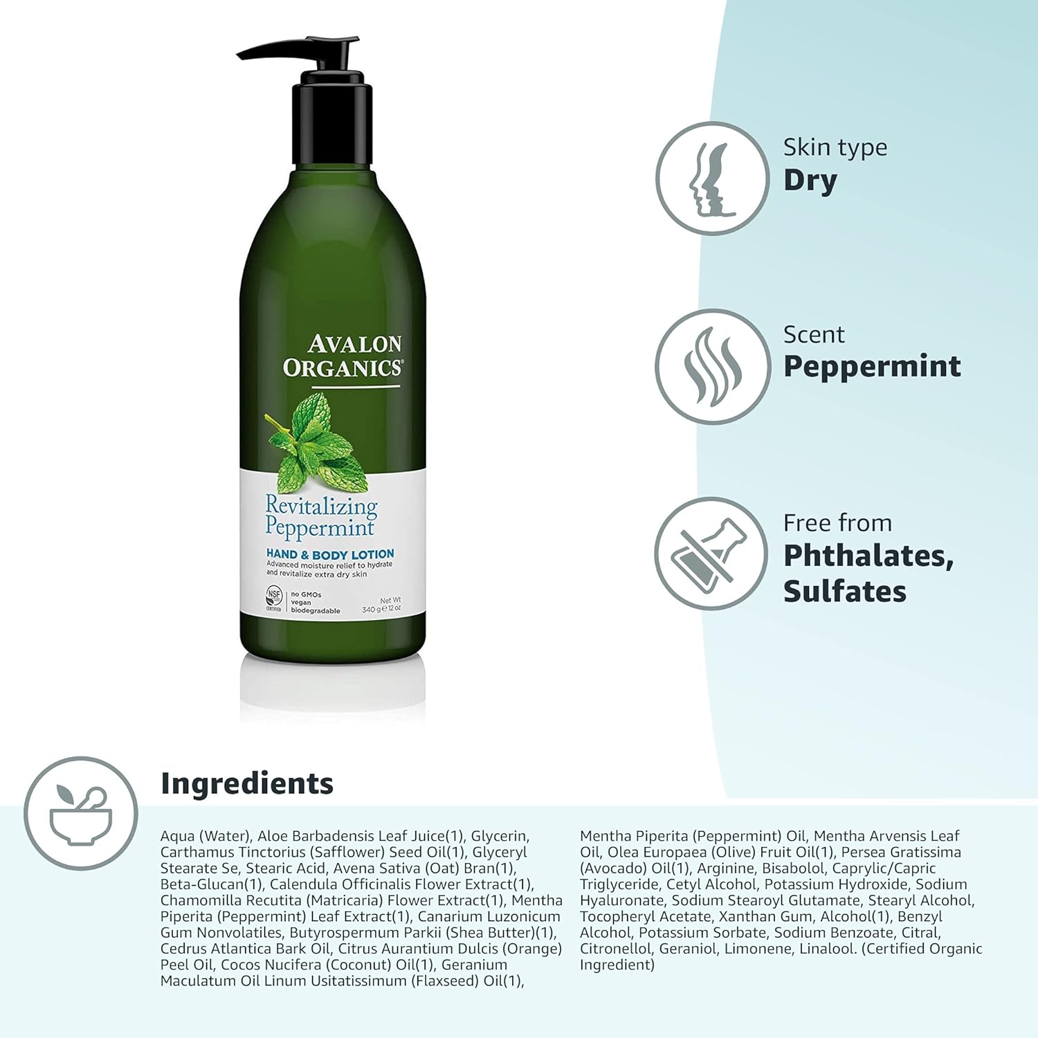 Revitalizing peppermint essential oil, aloe, vitamin E and nutrient-rich beta glucan work together to restore skin's natural lipid balance.
