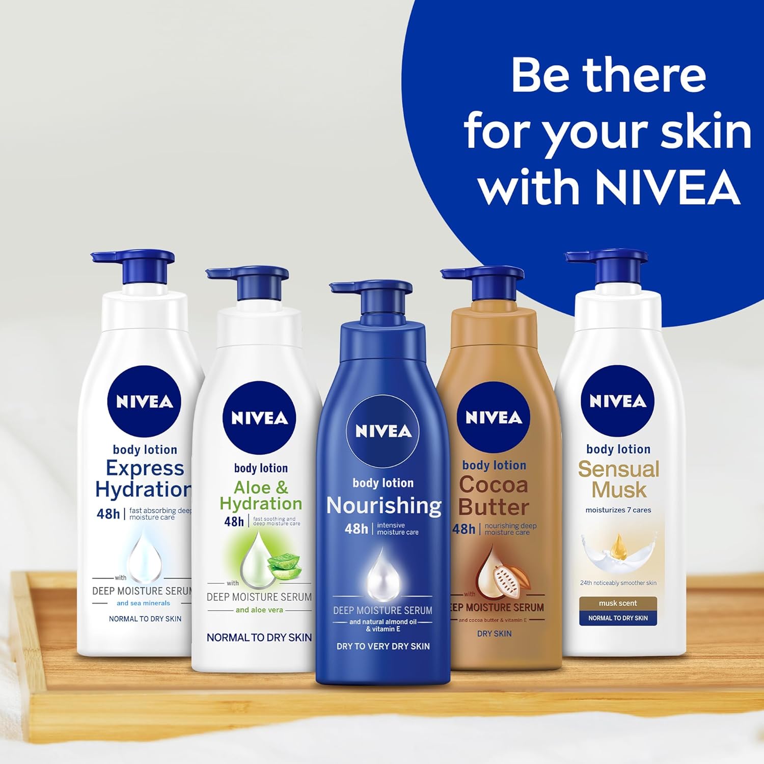 NIVEA Sensual Musk Body Lotion is a unique formula that gives your skin advanced moisturization with an intense and long-lasting musk fragrance.