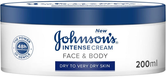 Johnson's Face & Body Cream, Dry to Very Dry Skin, Intense Nourishment, Enriched with Vitamin E and moisturizing agents, 48-hour nourishment, 200ml