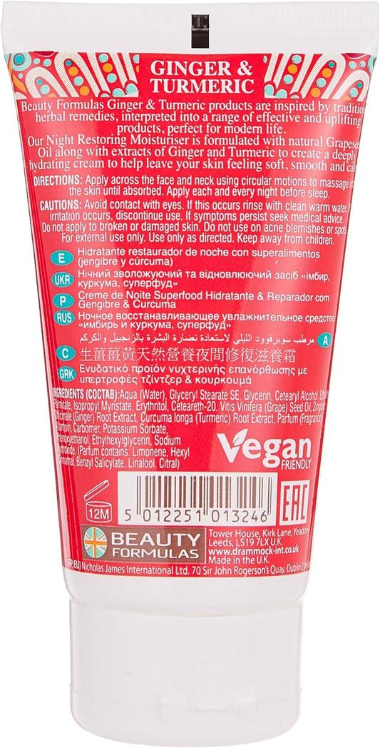 Beauty Formulas Ginger & Turmeric Superfood Night Restoring Moisturiser, 75ML