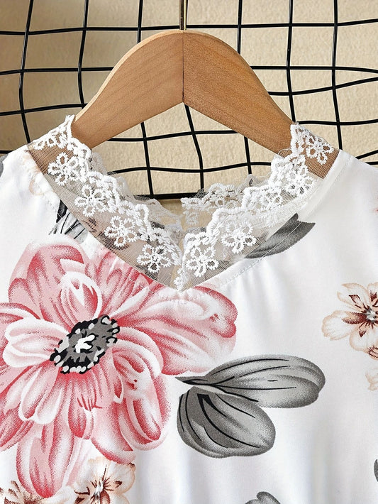 Girls' Flower Print Lace Dress