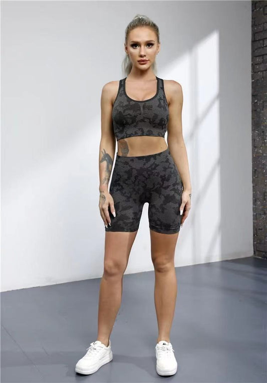 New camouflage seamless herringbone bra flat angle pants camouflage bra shorts three part pants set