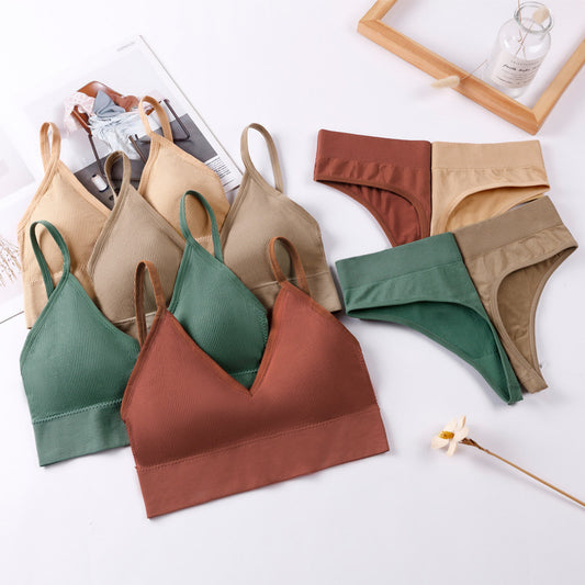 No Steel Ring Small Breast Underwear Ladies Deep V Large Backless Camisole Sexy Low Waist Thong Panties Bra Set