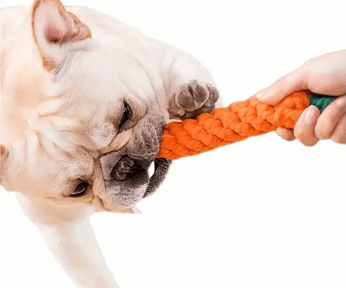 Carrot-Shaped Dog Chew Toy with Rope Knot