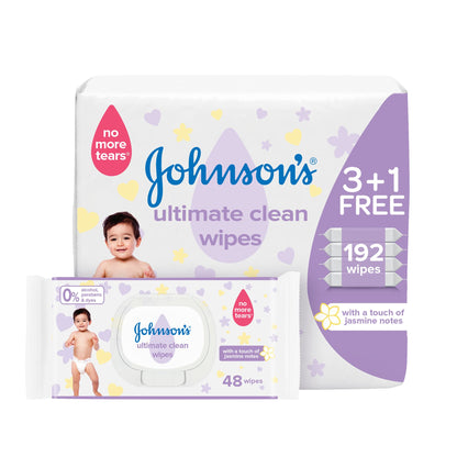 Keep your baby’s skin feeling clean and fresh at all times! JOHNSON’S Baby Ultimate Clean Wipes are larger and thicker wipes that are gentle enough to frequently clean baby’s skin, including bottoms, hands and delicate faces without leaving unwanted residue. Formulated to minimise the risk of allergies, JOHNSON’S Baby Ultimate Clean Wipes are specially developed with the unique NO MORE TEARS formula. They are 30% larger to effectively clean your baby after messy mealtimes and curious crawling, and are thick enough to cope with even the biggest messes. JOHNSON’S Baby Ultimate Clean Wipes are infused with a touch of calming jasmine fragrance, contain 0% alcohol, parabens and dyes, and are pH balanced to leave your baby’s skin feeling soft & healthy. JOHNSON’S baby care products. Trusted by moms for over 125 years!