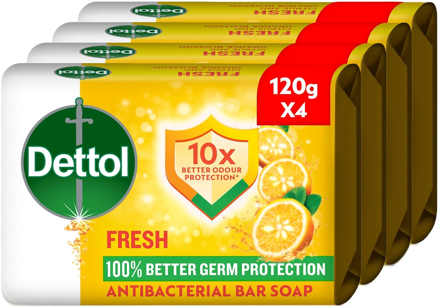 Dettol Fresh Anti-Bacterial Bathing Soap Bar Citrus & Orange Blossom Scent, 120g x4