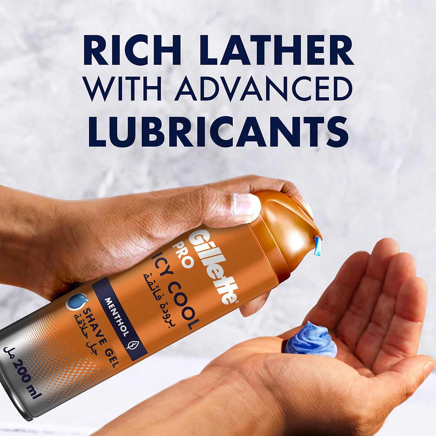 Gillette Pro Icy Cool Menthol Shave Gel leaves sensitive skin feeling smooth, cool and refreshed. This unique formula combines Gillette’s best shave gel with the feeling of a cooling aftershave for incredible skin comfort before, during and after your shave. To feel just-shaved smooth all day, use with a Gillette Fusion ProGlide FlexBall razor.