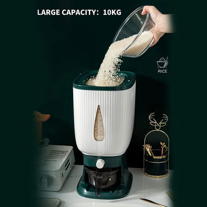10Kg Rice Dispenser Storage Container Sealed Grain Cereal Dispenser Storage Box with Lid Measuring Cylinder